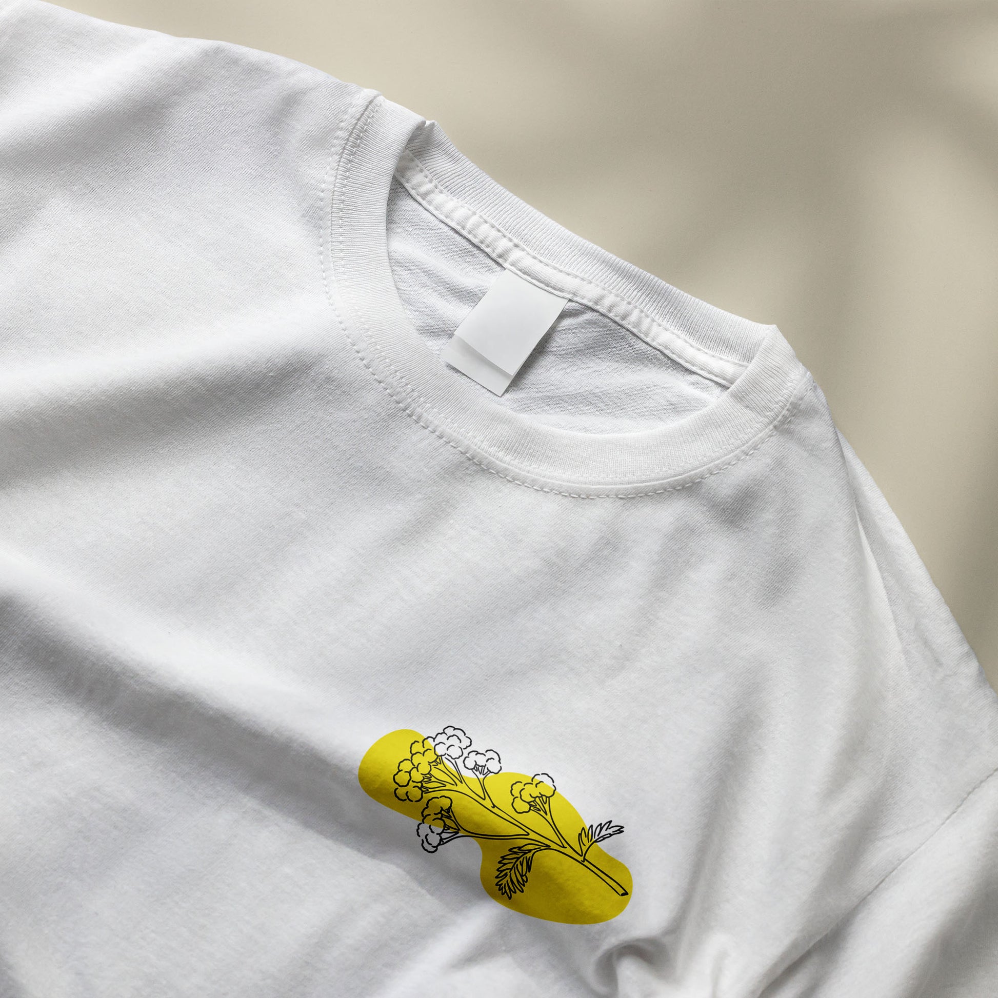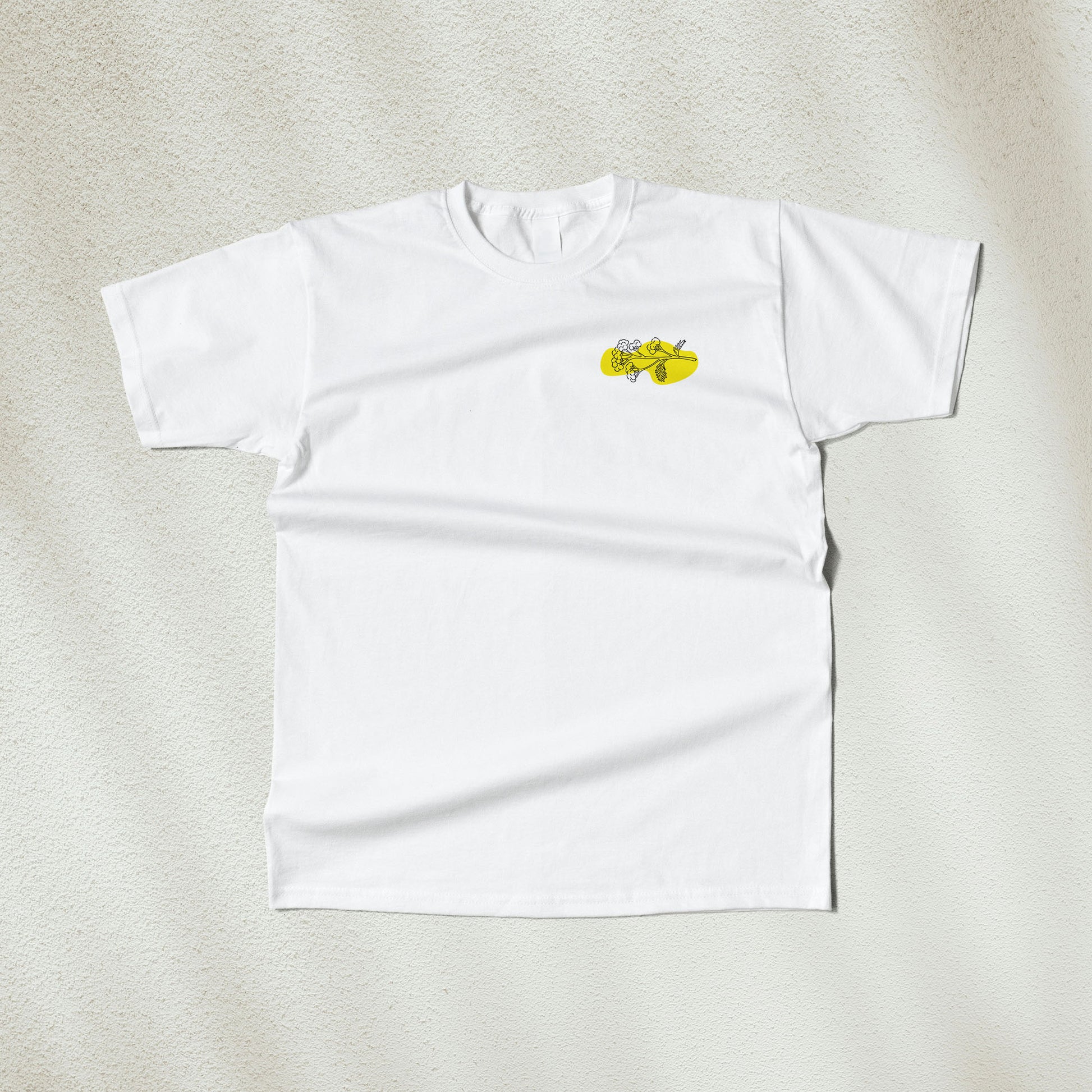 Symbole de la Méditerranée, l’immortelle corse se dévoile ici dans une version graphique et épurée. Une branche délicatement dessinée trône sur un aplat abstrait jaune, placée subtilement au niveau du cœur. Un t-shirt lumineux, à la fois discret et affirmé, qui célèbre l’essence végétale de l’île.